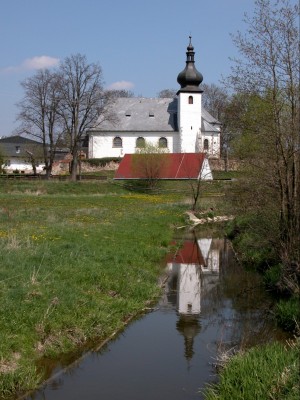 Staré Sedlo - Pohled ke kostelu Nanebevzetí Panny Marie